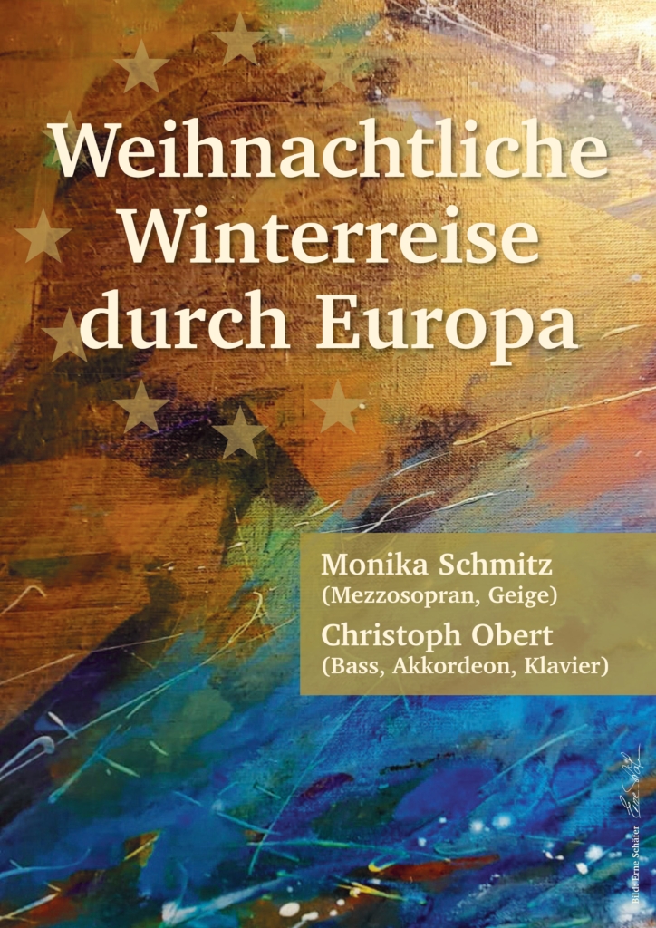 Eine musikalische Reise, die Charakteristik und weihnachtliche Stimmungen der einzelnen Regionen Europas einfängt und entfaltet. Mit Monika Schmitz (Mezzosopran, Geige) und Christoph Obert (Bass, Akkordeon, Klavier).